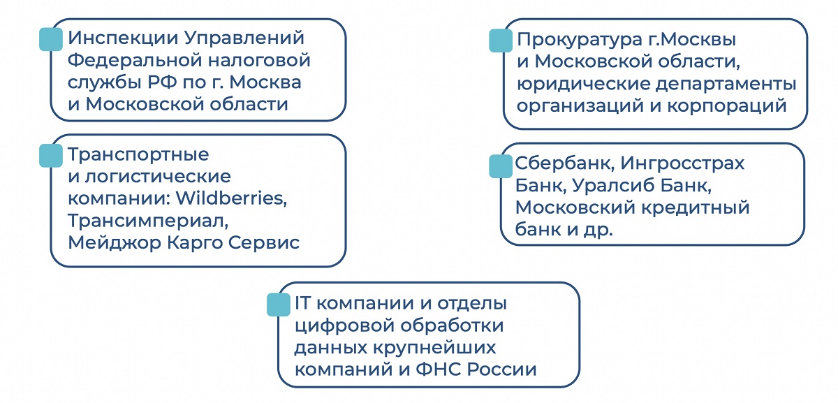 заключил договоры на практику с Инспекциями управлений Федеральной налоговой службы г.Москвы и Московской области.