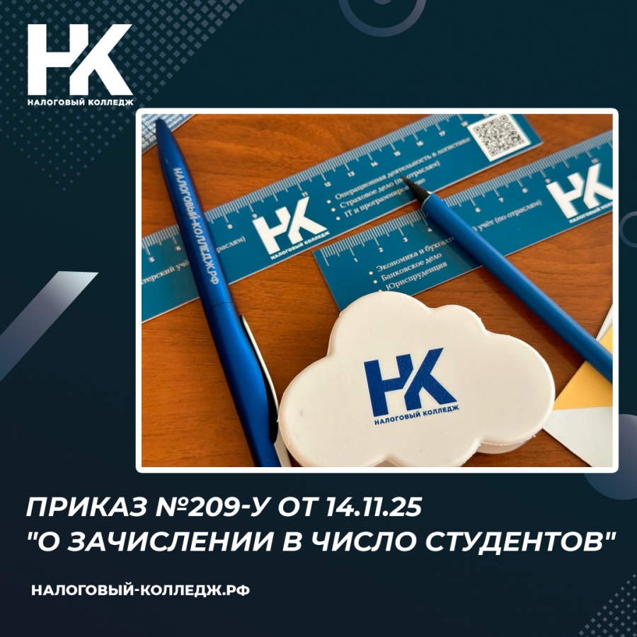 Приказ №209-у от 14.11.25 "О зачислении в число студентов"